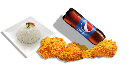 Una buena elección preferir el sabor característico del arroz blanco norteño con el broaster de pollo crujiente.