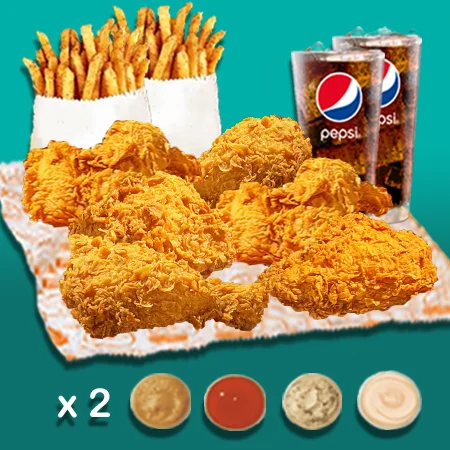Un pollo broaster entero, son 8 piezas de puro sabor, marinado 4 horas.